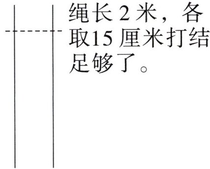 1.2米=200厘米 200+200-15-15=370(厘米) 2.短的绳子这边短,长的绳子那边长,因为打结用的绳子长度一样。