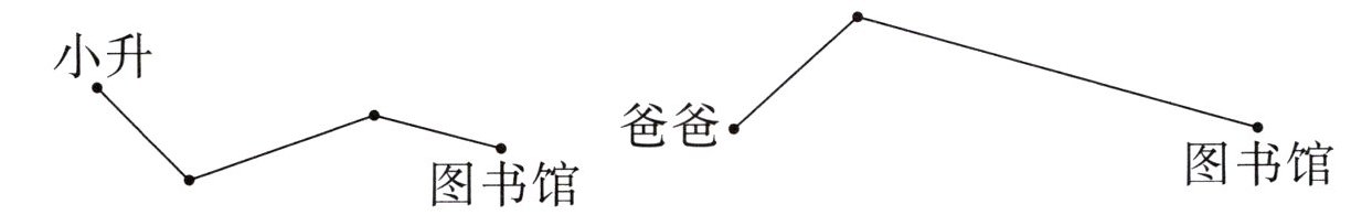 四、小升和爸爸今天都去了图书馆,但两人的路线不同(两人的路线图分别绘制如下)。请你用圆规比较一下,( )的路线更长。