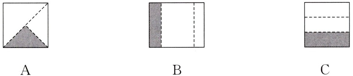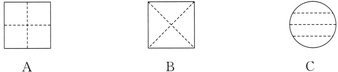 2. 以下折纸方案中不能表示$\dfrac{1}{4}$的是( )。