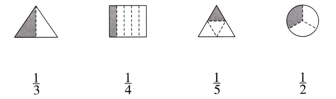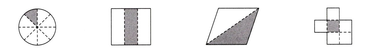 1. 下面各图中涂色部分表示$\dfrac{1}{3}$的图形是( )。