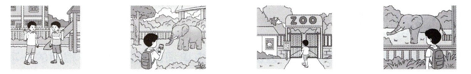 One sunny day, Philip goes to the zoo. He's happy to see the animals. He sees a big elephant. Philip is amazed(惊奇的). He quickly takes out his phone and takes photos of it.