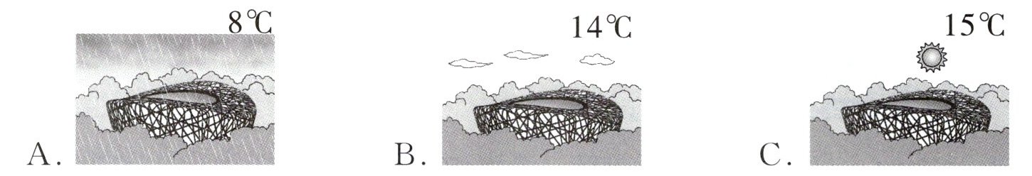 )3. It's fifteen degrees. It's sunny in Beijing.A. B. C.