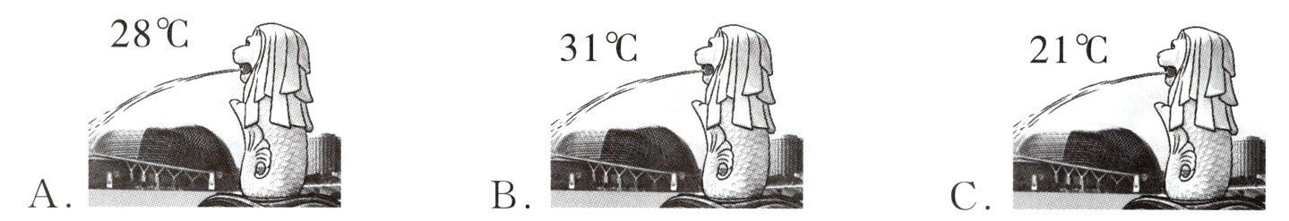)2. It's twenty - one degrees in Singapore.A. B. C.