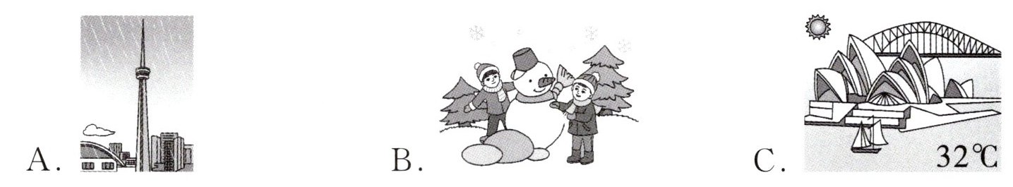 )1. It's hot in Sydney.A. B. C.