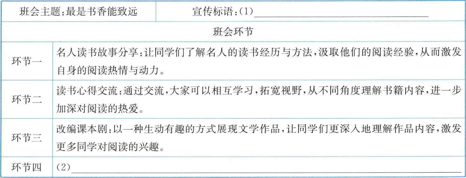 |班会主题:最是书香能致远|宣传标语:(1)____|