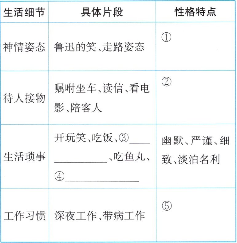 2. 本文善于通过细节描写表现人物性格,请根据提示完成下面的表格。