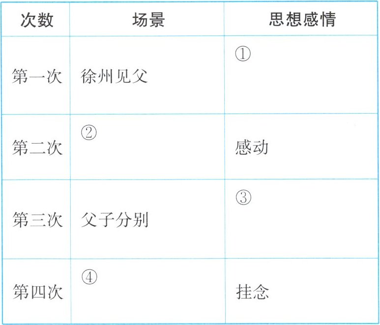 ①悲哀 ②望父买橘 ③惜别 ④父亲来信