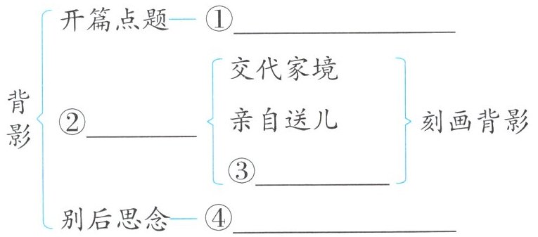 ①引出背影 ②回忆往事 ③车站买橘 ④再现背影