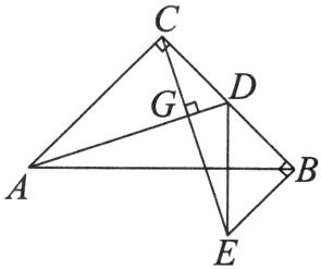 9. 如图,$AC= BC$,$\angle ACB= 90^{\circ}$,点$D为BC$的中点,$BE\perp BC$,$CE\perp AD$,垂足分别为$B$,$G$,那么$AD= CE$,$BD= BE$。这两个结论是否正确?为什么?