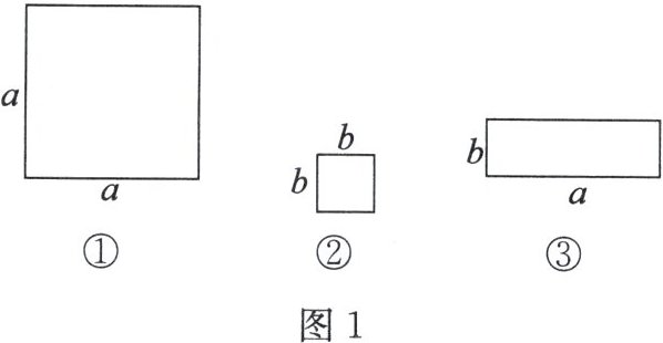 如图1,卡片①是边长为$a$的正方形,卡片②是边长为$b$的正方形,卡片③是长和宽分别为$a$,$b$的长方形。