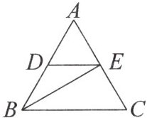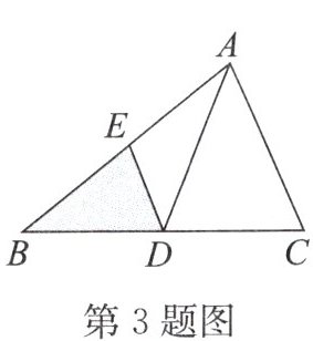 3. 如图,已知在△ABC中,点D,E分别是BC,AB的中点。若△ABC的面积等于8,则△BDE的面积等于(