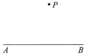 8. 如图,点$P是直线AB$外一点,利用直尺和圆规过点$P作直线AB$的平行线(利用“内错角相等,两直线平行”作图)。