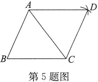 5. 如图,以$\triangle ABC的顶点A$为圆心,以$BC$为半径作弧;再以顶点$C$为圆心,以$AB$为半径作弧,两弧交于点$D$;连接$AD$,$CD$。若$\angle B= 65^{\circ}$,则$\angle ADC$的大小为______。