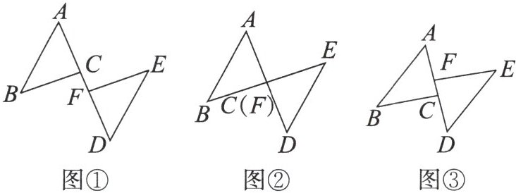 11. 如图①,点$A$,$C$,$F$,$D$在同一条直线上,$AF= DC$,$AB= DE$,$BC= EF$。