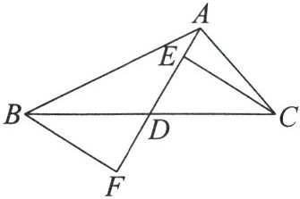 9. 如图,在$\triangle ABC$中,$AD$是中线,点$E$,$F在直线AD$上,且$CE// BF$。求证:$CE= BF$。
