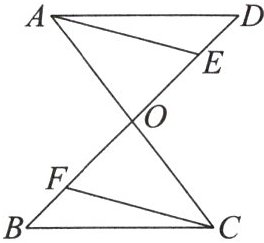 10. 如图,$AC与BD交于点O$,$AD= CB$,$E$,$F是BD$上两点,且$AE= CF$,$DE= BF$。求证:(1)$\angle D= \angle B$;(2)$AE// CF$。