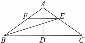 26. (8 分)如图,在△ABC 中,AB= AC,D 是 BC 边上的中点,连接 AD,BE 平分∠ABC 交 AC 于点 E,过点 E 作 EF//BC 交 AB 于点 F。