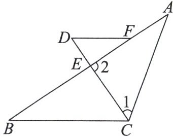 5. 如图,在△ABC 中,CD 平分∠ACB,CD 交边 AB 于点 E,在边 AE 上取点 F,连接 DF,使∠1 = ∠D。