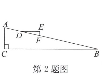 2. (跨学科融合)物理实验中,小明研究一个小木块从斜坡上滑下时的运动状态。如图,在 Rt△ABC 中,∠C = 90°,∠A = 77°,小木块(△DEF)在斜坡 AB 上,且 DE//BC,则∠EDF 的度数为(