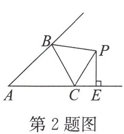 2. 如图,$\triangle ABC的两个外角的平分线BP$,$CP交于点P$,$PE\perp AC于点E$。若$\triangle ABC的面积为10$,$\triangle BPC的面积为7$,$PE= 4$,则$\triangle ABC$的周长为( )