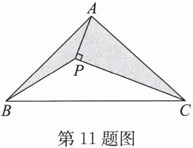 11. 如图,在 $ \triangle ABC $ 中,$ CP $ 平分 $ \angle ACB $,$ AP \perp CP $ 于点 $ P $,若 $ \triangle ABC $ 的面积为 $ 5 $,则阴影部分的面积为( )