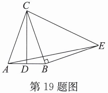 19. 如图,在 $ \triangle ABC $ 中,$ AC = BC $,$ AB = 8 $,$ CD $ 是 $ \triangle ABC $ 的角平分线,以 $ BC $ 为腰作等腰直角三角形 $ BCE $,使 $ \angle CBE = 90^{\circ} $,连接 $ AE $,则 $ \triangle ABE $ 的面积为______。