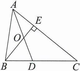 21. (6 分)如图,在 $ \triangle ABC $ 中,$ AD $ 是角平分线,$ BE $ 是高,$ AD $ 与 $ BE $ 相交于点 $ O $。