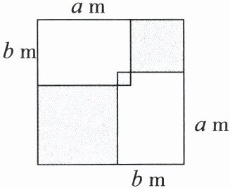 (4) 某学校“行知农场”开辟出一块边长为11 m的正方形菜地,计划种植黄瓜与西红柿两种蔬菜. 兼顾美观,在菜地中设计两个长和宽分别为 $ a $ m, $ b $ m 的长方形,其中每个长方形的长与宽之差为2 m,每个长方形的面积为 $ 35 m^{2} $,如图所示,计划在图中阴影部分种植黄瓜,其余菜地种植西红柿,请求出黄瓜的种植面积.