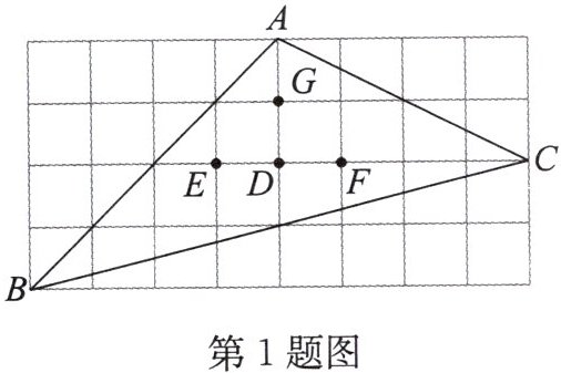 1. 如图,在方格纸中,点 $ A $,$ B $,$ C $,$ D $,$ E $,$ F $,$ G $ 都在格点上,则 $ \triangle ABC $ 的重心是 ( )