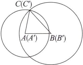 为圆心、$B'C'$为半径的圆的交点,所以由$A'C' = AC$,$B'C' = BC$可知点$C'$