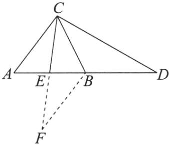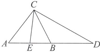 3. 如图,已知$AB = AC$,$\angle ACB = \angle ABC$,$B$是$AD$的中点,$E$是$AB$的中点。求证:$CD = 2CE$。