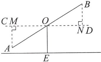 【例】小明和小颖玩跷跷板时的示意图如图所示,点$O是跷跷板AB$的中点,支柱$OE$与地面垂直,且$OE的长度为50\ cm$,当小明(点$A$)到水平线$CD的距离AM为40\ cm$时,小颖(点$B$)到地面的距离为(