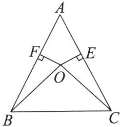 证明:连接OA(图略).因为点O到AB,AC的距离相等,即OF=OE,所以AO平分∠BAC,即∠BAO=∠CAO.在Rt△BOF和Rt△COE中,OB=OC,OF=OE,所以Rt△BOF≌Rt△COE(HL).所以∠FBO=∠ECO.在△AOB和△AOC中,∠BAO=∠CAO,∠ABO=∠ACO,OB=OC,所以△AOB≌△AOC(AAS).所以AB=AC.