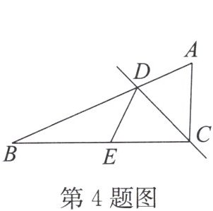 4. 如图,点 $D$ 为 $\triangle ABC$ 的边 $AB$ 上一点,点 $A$ 关于直线 $CD$ 对称的点 $E$ 恰好在线段 $BC$ 上,连接 $DE$,若 $AB = 10$,$AC = 4$,$BC = 9$,则 $\triangle BDE$ 的周长是 (