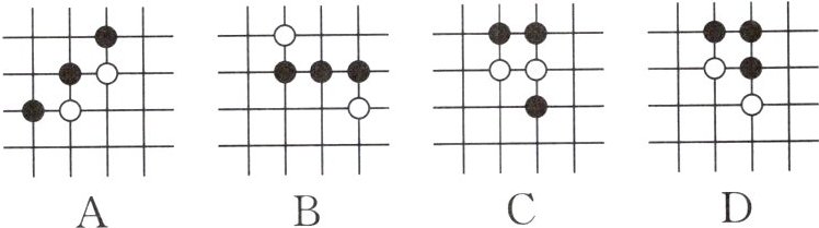 1.(传统文化)围棋起源于中国,古代称为“弈”。下列由黑白棋子摆成的图案是轴对称图形的是 (