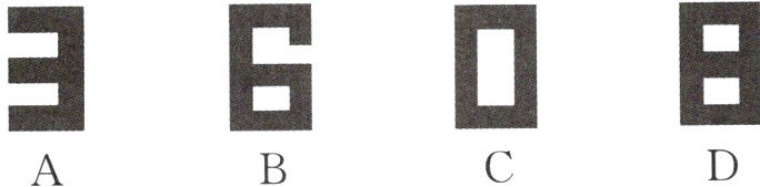 2. 下列“数字”图形中,有且仅有一条对称轴的是 (