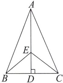 6. 如图,$ AD $ 是 $ \triangle ABC $ 的高,$ E $ 为 $ AD $ 上一点,且 $ BE = CE $,求证:$ AB = AC $。
