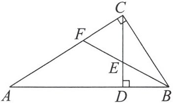 3. 如图,已知在△ABC中,∠ACB= 90°,CD⊥AB于点D,BF平分∠ABC交CD于点E,交AC于点F。求证:CE= CF。