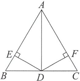 2. 如图,在△ABC中,AB= AC,D是BC的中点,DE⊥AB于点E,DF⊥AC于点F,则图中全等三角形共有(