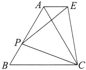 证明:因为△ABC和△PCE为等边三角形,所以BC=AC,PC=EC,∠ACB=∠ABC=∠ECP,所以∠ACB-∠ACP=∠ECP-∠ACP,即∠BCP=∠ACE.在△PCB和△ECA中,$\left\{\begin{array}{l} BC=AC,\\ ∠BCP=∠ACE,\\ PC=EC,\end{array}\right. $所以△PCB≌△ECA(SAS),所以∠ABC=∠CAE,所以∠ACB=∠CAE,所以AE//BC.