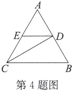 4. 如图所示,在等边三角形 $ABC$ 中,$CD$ 是 $\angle ACB$ 的平分线,过点 $D$ 作 $BC$ 的平行线交 $AC$ 于点 $E$. 已知 $\triangle ABC$ 的周长为 8,则 $\triangle ADE$ 的周长为