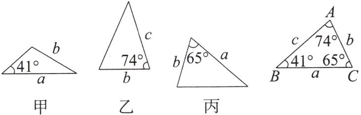 1. 如图,已知△ABC的六个元素,下面甲、乙、丙三个三角形中标出了某些元素,则与△ABC全等的三角形是( )