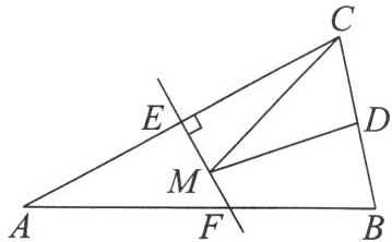 2. 如图,等腰三角形 $ ABC $ 的底边 $ BC $ 长为 $ 3 $,面积是 $ 12 $,腰 $ AC $ 的垂直平分线 $ EF $ 分别交边 $ AC $,$ AB $ 于点 $ E $,$ F $。若 $ D $ 为 $ BC $ 边的中点,$ M $ 为线段 $ EF $ 上的一动点,则 $ \triangle CDM $ 周长的最小值为(