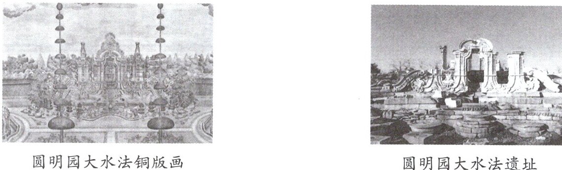 (2) 观察大水法焚毁前后图片,被誉为“万园之园”的圆明园变为断壁残垣,对此你有何感想?
