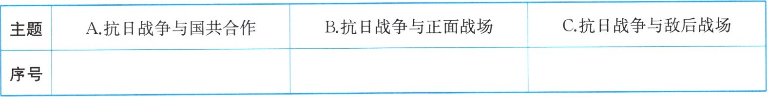 (1)阅读上述材料,将能够体现下列主题的历史资料序号填写到表格中相应位置。