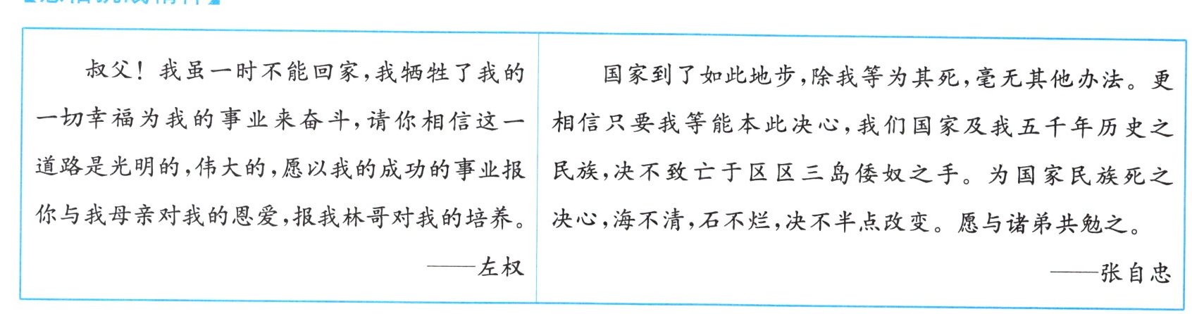 (3)结合所学知识,说明左权、张自忠两位将军分别牺牲于哪一战斗中?左权、张自忠两位将军的信蕴含着怎样的民族精神?