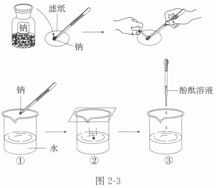 7. 在钠与水反应的实验中,有如下操作和实验现象,如图2 - 3所示。