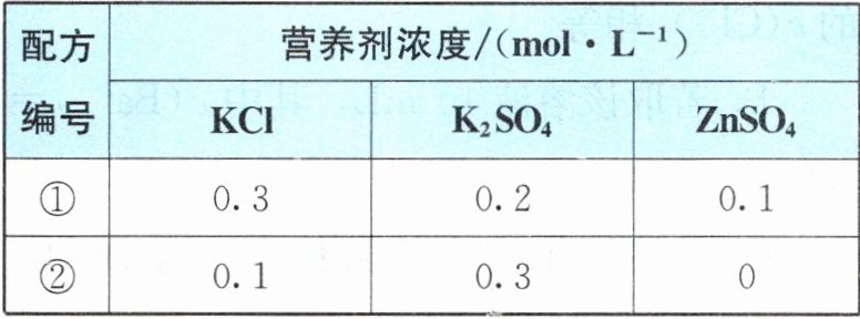若两种营养液体积相同,则下列对它们成分的分析中,正确的是(