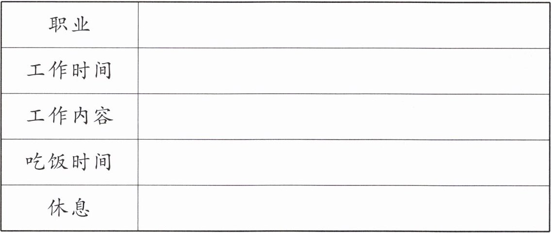 3. 对父母的工作进行小记者提问时,应该怎么做?请填写调查表。
