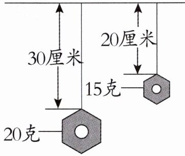 4.如图,在做摆的实验时,小锋在30厘米长的细绳下端系一个20克的螺母,小静在20厘米长的细绳下端系一个15克的螺母,在实验过程中